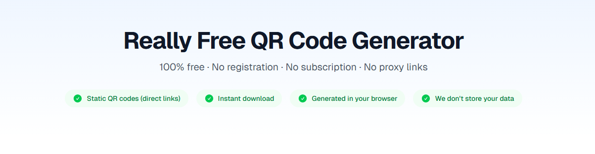 A genuinely free QR code generator focuses on simplicity and transparency. There are no sign-ups, no trial periods, and no hidden fees. You generate your QR code, download it, and use it however you like—forever.